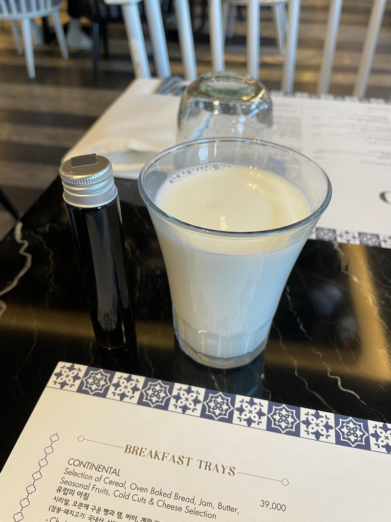 라떼 시켰는데 내려주지 않고 이렇게 준다. 너무 성의가 없는 조식이었네욤.